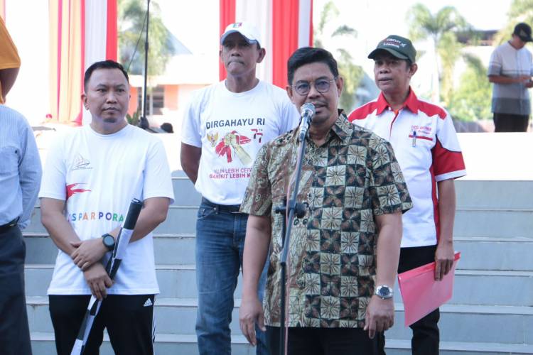 Wabup Edy Manaf menyampaikan bahwa kegiatan gerak jalan setiap perayaan HUT Kemerdekaan Republik Indonesia adalah momentum yang selalu ditunggu tunggu masyarakat dari semua kalangan.